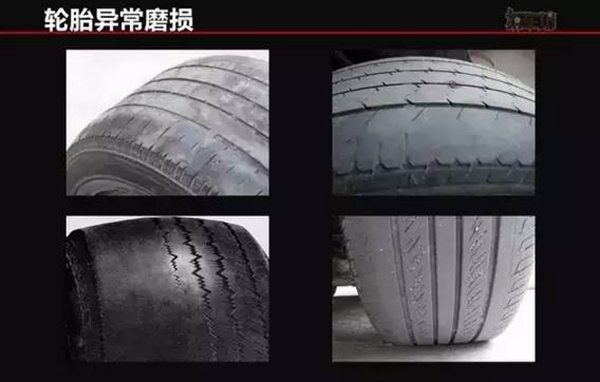 1) 當(dāng)駕駛車輛時(shí)感到方向轉(zhuǎn)向沉重、發(fā)抖、跑偏、不正、不歸位或者發(fā)現(xiàn)輪胎單邊磨損、波狀磨損、塊狀磨損、偏磨等不正常磨損以及駕駛時(shí)車感飄浮、顛顫、搖擺等現(xiàn)象。